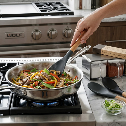 Navalonixcosh Signature Series: Premium Non-Stick Silicone Ladle - Ergo-Grip Walnut Handle for Effortless Service & Protecting Cookware