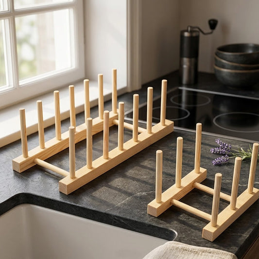 Navalonixcosh Premium Natural Wood Dish Rack - Stylish Vertical Plate & Cup Organizer - Eco-Friendly Kitchen Drainer for Plates, Bowls, and Mugs