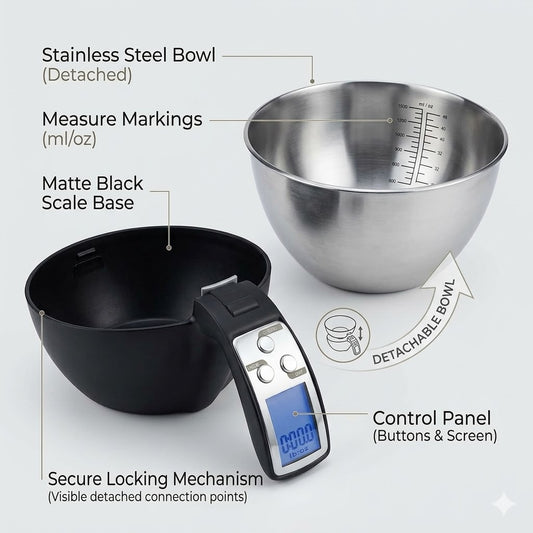 Navalonixcosh Precision Master: 2-in-1 Digital Mixing Bowl Scale - Removable Stainless Steel Bowl with 5kg High-Precision Sensor & Ergonomic LED Display