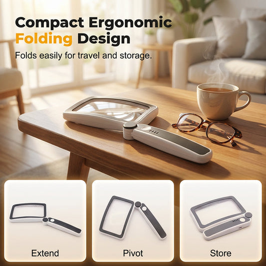 Folding Handheld Magnifying Glass with Light for Reading -Navalonixcosh®